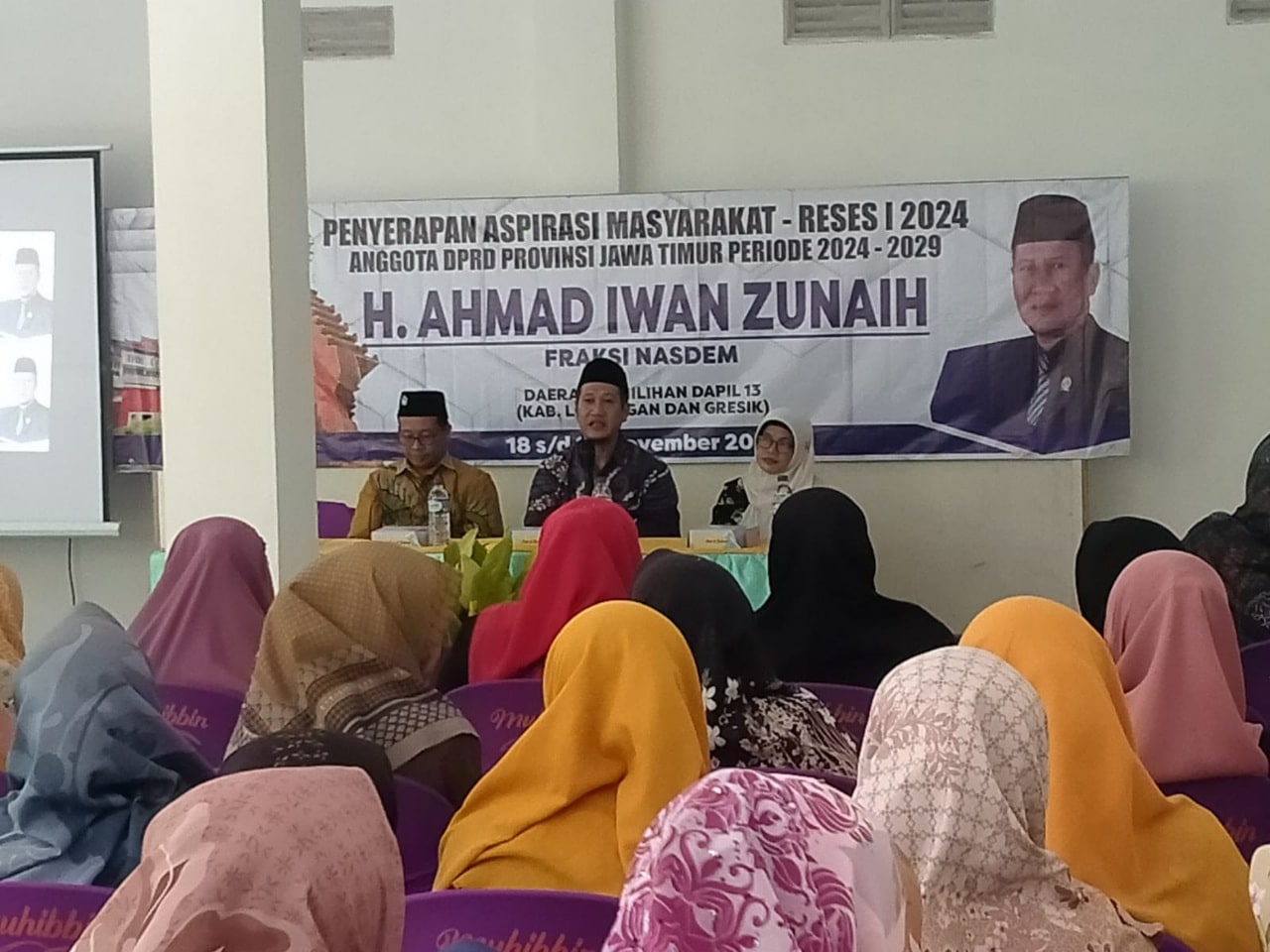 GRESIK l bidik.news – Anggota Fraksi NasDem DPRD Jawa Timur H.Ahmad Iwan Zunaih saat menjalankan tugas reses l di daerah Ujung Pangkah kabupaten Gresik di waduli warga terkait kelangkaan pupuk.