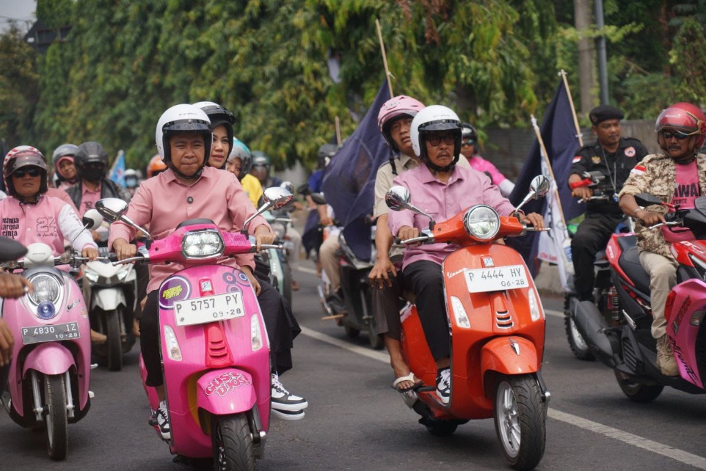 JEMBER l bidik.news – Bakal calon bupati Jember Muhammad Fawait atau lebih dikenal gus Fawait bersama pasangannya Djoko Susanto, Rabu 28 Agustus 2024 mendaftar ke KPU Jember. Dengan diikuti puluhan ribu pendukungnya, politisi Gerindra tersebut menggunakan kendaraan sepeda listrik menuju KPU kabupaten Jember.