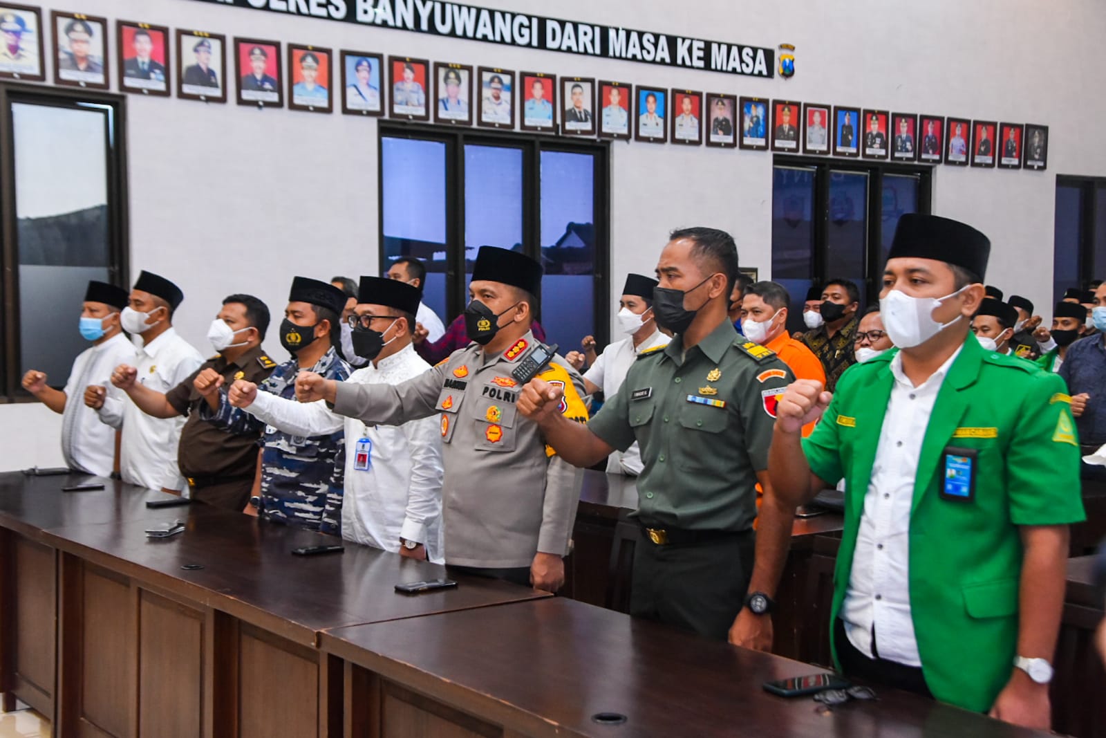 Acara yang digelar di Rupatama Wira Pratama Polresta Banyuwangi, Rabu (20/04/2022) sore tersebut, dihadiri langsung Kapolresta Banyuwangi, Kombes Pol Nasrun Pasaribu, segenap jajaran Forkopimda Banyuwangi dan Ketua PC GP Ansor Banyuwangi, Ikhwan Arief.