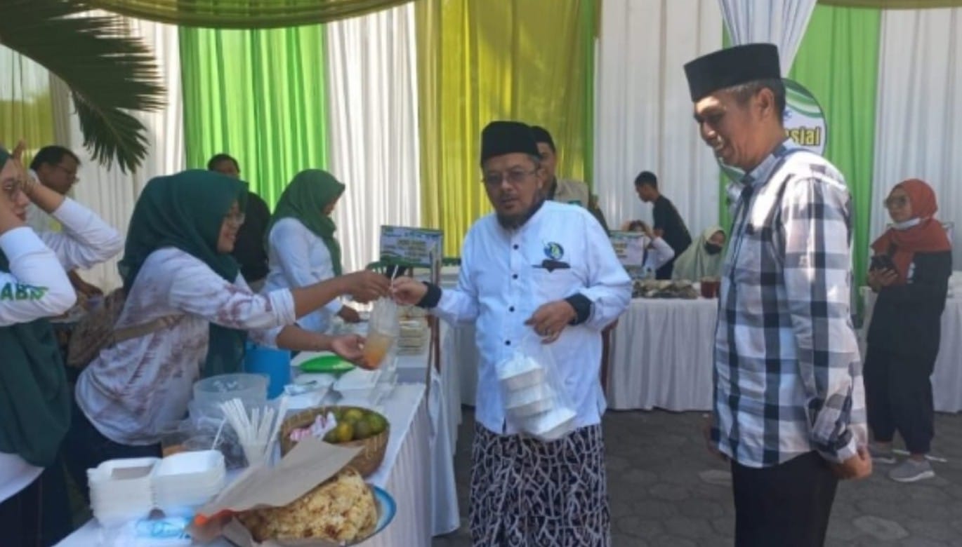Ketua PCNU Dr. KH. A. Muhyyiddin Khotib dan Kadinsos Situbondo Timbul Surjanto saat melihat bazar UMKM. (ist)
