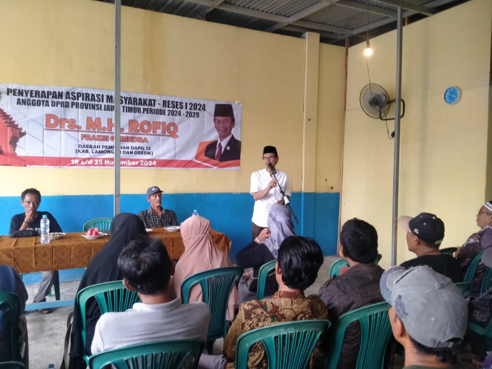 GRESIK l bidik.news – Anggota DPRD Jawa Timur asal Fraksi Gerindra Drs.M.H.Rofiq saat menjalankan tugas reses 1 tahun 2024 di kecamatan Bungah Kabupaten Gresik di sambati warga terkait kelangkaan pupuk bersubsidi.