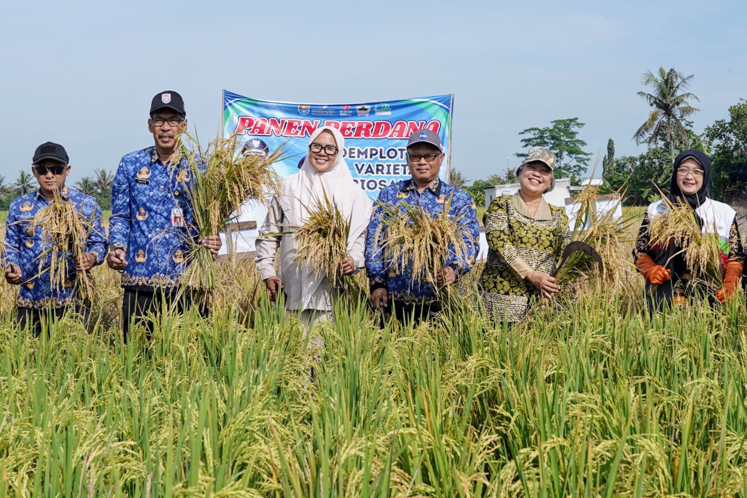 Keberhasilan program penanaman Padi Varietas Biosalin 2 ditandai dengan panen perdana sebanyak 18,68 ton, Kamis (17/4/2025). Penanaman padi varietas biosalin 2 adalah program Penelitian Musim Tanam (MT) 1 Demplot Padi Varietas Biosalin 2 untuk menguji ketahanan padi varietas biosalin 2 di lahan sawah pesisir yang terkena intrusi air laut (rembesan air laut ke tanah).