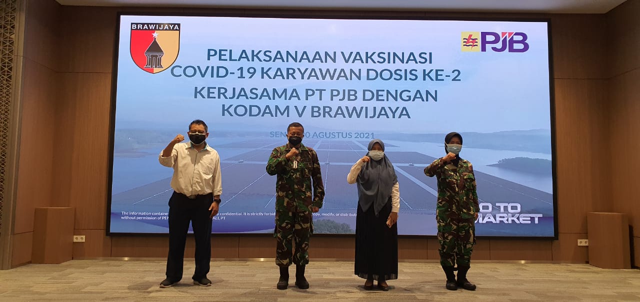 Direktur Utama PT PJB, Gong Matua Hasibuan sangat mengapresiasi Kodam V Brawijaya atas dukungannyabdalam pelaksanaan vaksinasi dosis 2 bagi karyawan PJB beserta keluarga. Kegiatan ini bentuk sinergi PJB dan Kodam V Brawijaya sebagai langkah nyata memerangi Covid-19 dan mempercepat terbentuknya herd immunity.