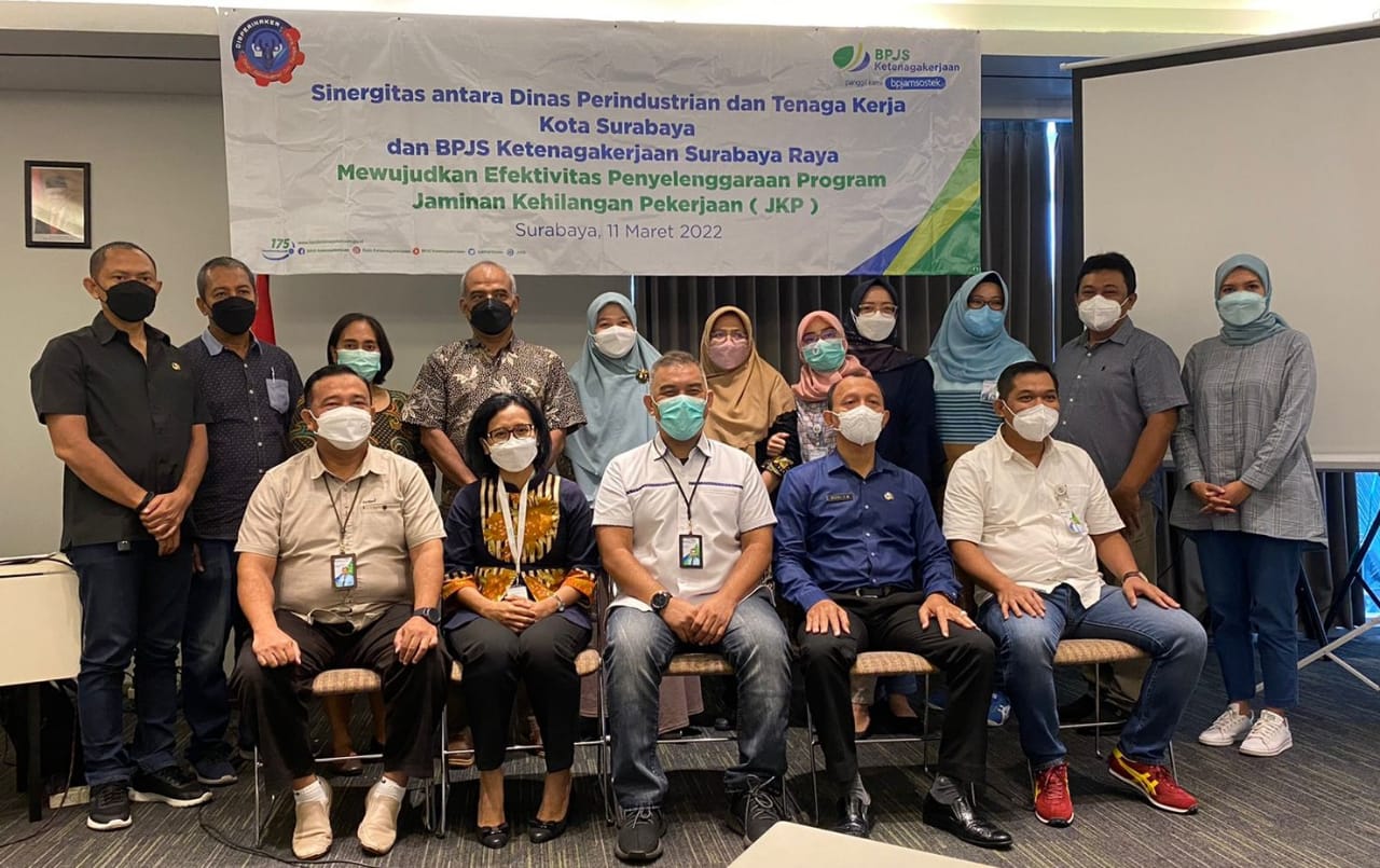 SURABAYA – Dinas Perindustrian dan Tenaga Kerja Kota Surabaya bersinergi dengan BPJS Ketenagkerjaan se-Surabaya Raya dalam mewujudkan efektivitas penyelenggaraan Program Jaminan Kehilangan Pekerjaan (JKP).