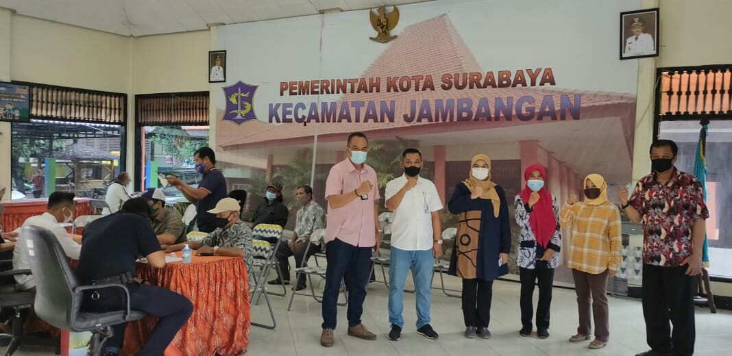 SURABAYA – BPJS Ketenagakerjaan atau BPJAMSOSTEK Cabang Surabaya Rungkut sosialisasi manfaat program kepada para pengurus kampung dan pelaku Usaha Mikro Kecil Menengah (UMKM) di Kec. Jambangan, Kamis (1/7/2021). Sosialisasi dengan penerapan prokes ini bertempat di Kantor Kec. Jambangan dengan dihadiri 164 pengurus RT, RW, LPMK dan pelaku UMKM se Kec. Jambangan.