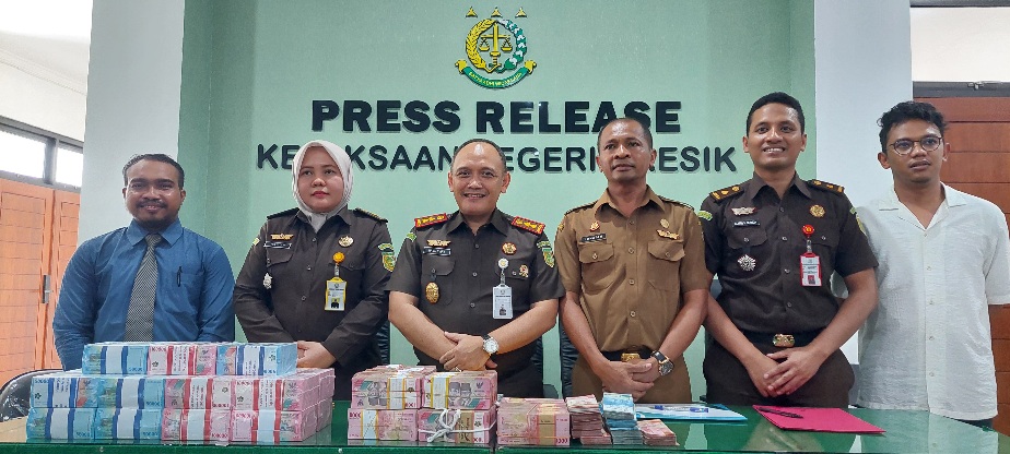 GRESIK I bidik.news – Kejaksaan Negeri (Kejari) Gresik menggelar jumpa pers terkait penyelamatan dan pemulian keuangan negara pada Senin (09/09/2024).