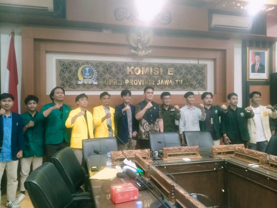 SURABAYA l bidik.news – Puluhan mahasiswa dari beberapa perguruan tinggi yang tergabung dalam Badan Eksekutif Mahasiswa (BEM) Nusantara Jawa Timur mendatangi ruang komisi E DPRD. Mereka diterima langsung oleh anggota Komisi E DPRD Jatim, Cahyo Harjo Prakoso.